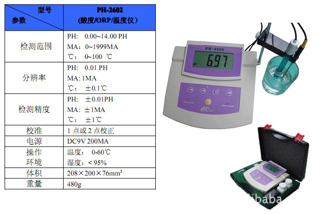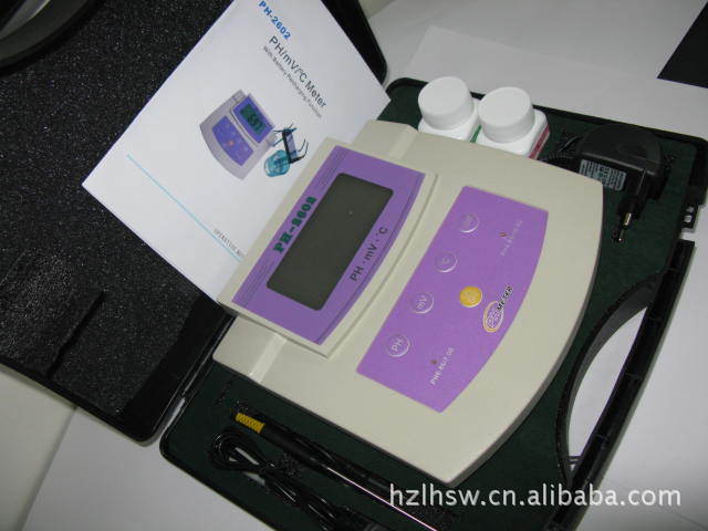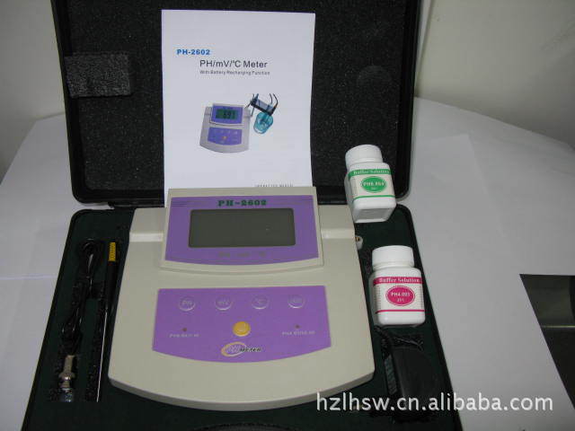 杭州產(chǎn)ph值檢測儀 臺式酸度計 PH-2602 設計精良,使用非常簡單方便。能自動補償測量中由于溫度變化產(chǎn)生的誤差,儀器測得的PH; mV或溫度值,可由儀器的液晶顯示屏上讀出,顯示屏并具有背光功能;儀器內(nèi)置充電電池,用戶可以攜帶到戶外進行操作測量.低壓指示提醒用戶及時充電.本產(chǎn)品價格優(yōu)惠;高;是戶外操作及實驗室理想的選擇對象.