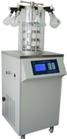 | 主要技術指標: 冷阱盤管溫度:<-55℃,-80℃(可選) 真空度:<10Pa 凍干面積:0.18-0.27m2 捕水能力:6Kg/24h 外型尺寸:660×560×(955+450)(mm) 物料盤規格: ф240mm共4層 層間距70mm(散裝物料) ф240mm共6層 層間距50mm(散裝物料) 可選 ф200mm共3層(瓶裝物料,可選配手動壓蓋裝置) 物料盤: 特殊設計的不銹鋼樣品架,樣品盤間距可調,層數自由設定;物料干燥盤直徑為240mm,共四層;可放置物料約2000ml(料厚10mm)。 壓蓋型:物料干燥盤直徑為200mm,共三層;可放置物料約1500ml(料厚10mm),或放置直徑22mm的瓶子255個。 凍干時間:物料厚度不超過10mm,冷干時間一般24小時左右 凍干瓶:同時多掛瓶為8個,分為以下4種規格:1000ml、500ml、250ml、100ml,可根據需要自由組合,凍干過程中可隨時更換凍干瓶,同時可凍干幾種不同樣品,凍干速度快、時間短、操作簡單。配備旋凍裝置,使樣品邊旋轉邊凍成殼狀薄層結構,以利于水份的升華。 操作簡單。配備旋凍裝置,使樣品邊旋轉邊凍成殼狀薄層結構,以利于水份的升華。 |