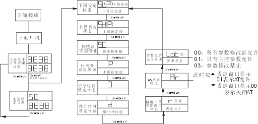 ③在自整定工作狀態,按SET鍵后,系統將進入設定狀態,并退出自整定狀態,你若要重回自整定狀態時,則可把AT再設置成1后退出。