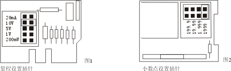 | 當你移到插針上的短路插,就可以得到圖2所示小數點位置. 注:該儀表出廠時設定量程0~10V,相應的顯示0~2000,用戶根據自己的實際使用情況選擇你所需要的量程和小數點位置. |