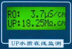 系統電源指標燈 系統沖洗指示燈 水源進水指示燈 UP/RO取水按鈕 水箱滿水指示燈 系統自動定時沖洗功能 泵浦工作指示燈 UP超純水電阻率在線監測 紫外消解指示燈 RO純水電導率在線監測(UPT-II機型) ![]() UPT-I超純水機 UPT-II超純水機 在線監測UP水電阻率 同時在線監測RO水電導率 和UP水電阻率 |