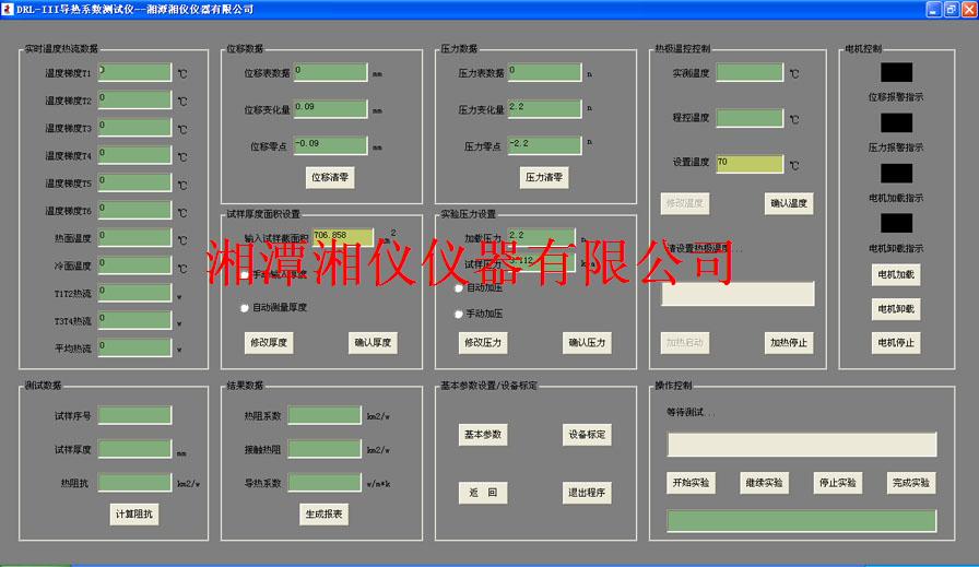 儀器特點:帶自動加壓,自動測厚裝置,并連計算機實現全自動控制。儀器采用6點溫度梯度檢測,提高了測試精度。可檢測不同壓力下熱阻曲線,采用優化的數學模型,可測量材料導熱系數和熱阻以及界面處接觸熱阻等多個參數。