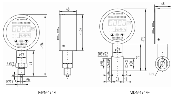 •Φ100mm(MPM/MDM484A)、Φ150mm(MPM/MDM484ZL)外形設(shè)計(jì)、超高亮度LED壓力顯示,可替代指針式電接點(diǎn)壓力表;