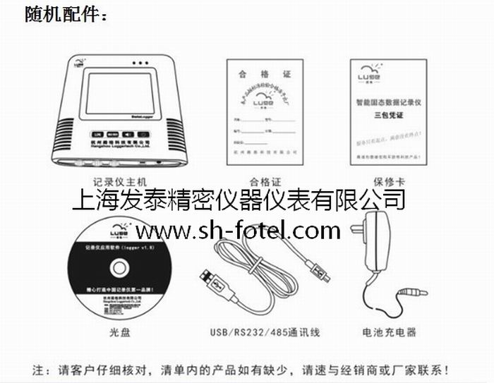 通訊數據線、記錄儀配套軟件、充電電源、合格證、保修卡、說明書、出廠測試報告書等