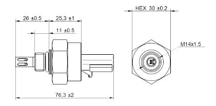所有尺寸為毫米 (mm). 裝配接口類型為FCI 雌性接口ref. 54200409 (黑色密封)。傳感器機身為不銹鋼材質。