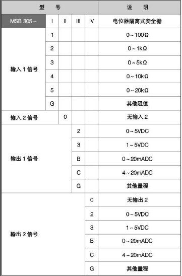 MSB305電位計隔離式安全柵型號規格