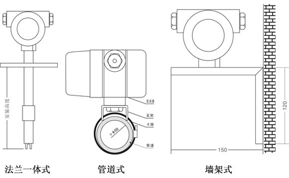 WKY1-1205般與傳感器安裝在起,也可以與傳感器分開安裝。分開安裝時,用戶可使用安裝附件將變送器固定在藝管道、支架或墻壁上。