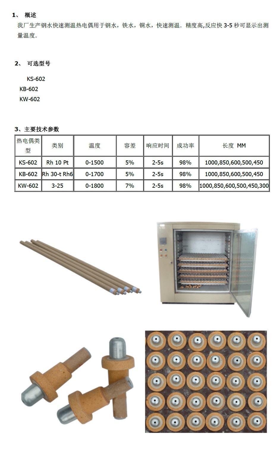 | 鉑銠10-鉑 | KS-602P | S | ±5 | 1400-1600 | 1650 | 4~6s |