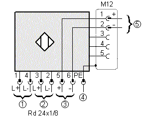 | 接口 | Rd 24 x 1/8接插件6線+ PE / M12接插件5線 | ||||||||||