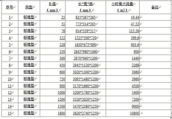 1.巴歇爾槽的尺寸與渠道安裝有關,請用戶