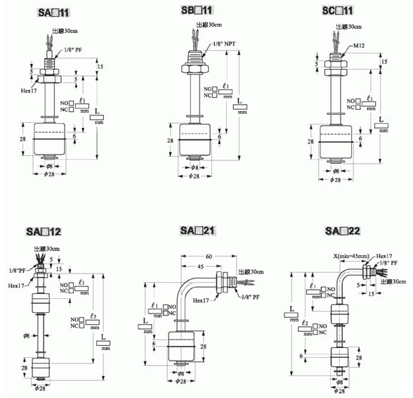 6、比重:浮球比重SG必須小于被測液體,否則浮球浮不起來。