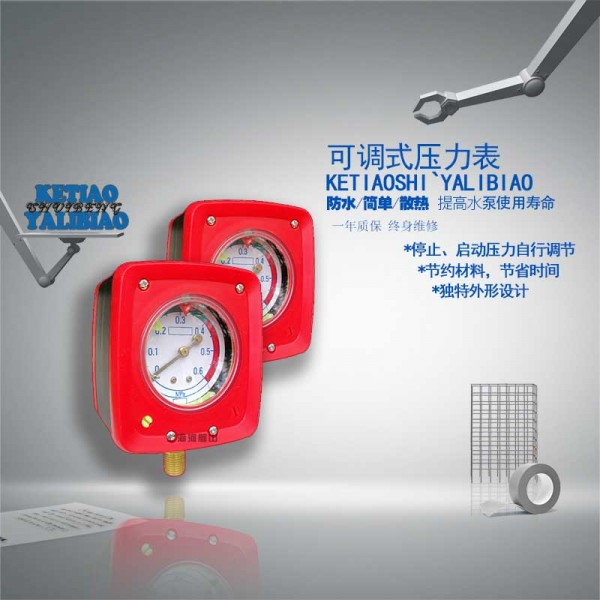 停止、啟動壓力可根據實際需要自行調節,不受壓差范圍限制;有效防止水泵頻繁啟動,提高了水泵的使用壽命;將傳統的壓力表和壓力開關合為一體,壓力罐制作流程上省去一個安裝孔,可節約生產材料,節省生產時間。的可調式壓力表不受光線影響,獨特的外形設計,具有良好的防水,散熱功能。