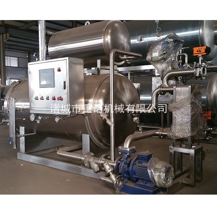 飲料殺菌鍋殺菌原理,在殺菌鍋的底部保留適當(dāng)?shù)能浕@部分水在通過循環(huán)水泵經(jīng)過換熱器進(jìn)行升溫,從上而下對(duì)產(chǎn)品進(jìn)行噴水,水加熱到殺菌溫度再進(jìn)行一段時(shí)間的循環(huán)噴淋從而達(dá)到殺菌目的,殺菌完成之后,使用過的軟化水在殺菌鍋底部收集。