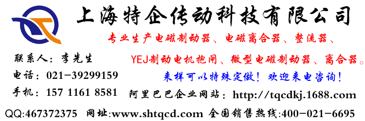 親,上海特企傳動科技有限公司專業(yè)制造電磁失電制動器,電磁通電制動器,交流電磁制動器,單片電磁離合器、單片電磁制動器、電磁離合制動器組合、微型電磁制動器、YEJ電機電磁剎車、RY整流器、ZL整流器。用于YEJ電機及自動化傳動系統(tǒng)。