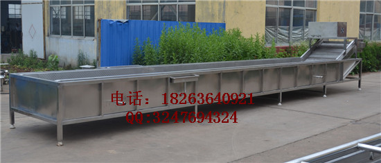 經蒸汽將水加熱到95℃-100℃,然后利用循環泵將槽池內的熱水進行強制循環,使槽池內熱水溫度分布均勻,果汁飲料巴氏殺菌機池中熱水溫差低于1℃,提高了滅菌成功率。蒸汽導流罩采用水密封,車間內無蒸汽溢出,保證了車間內的清晰度,設備帶有自動選袋功能,把滅菌失敗的產品自動選出。