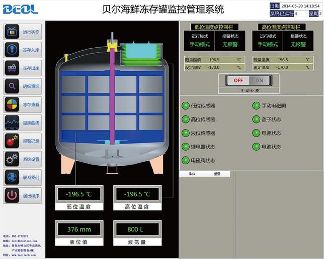 水產品的價值主要取決于其鮮度的高低。然而水產品含水量相當高 ,一般在70% ~80%;肌肉蛋白中的基質蛋白較少,肌肉組織脆弱,自溶作用速度快,容易受傷和受微生物的侵染,因而易于腐敗。海鮮儲藏保質期主要有儲藏溫度和溫度的波動兩個因素影響, 而智能海鮮液氮罐儲藏溫度穩定保持在-190℃,能有效延長海鮮儲藏的保質期,海鮮凍存保質期延長,錯過高峰期上市,便可獲得更高的收益。本產品主要儲存海鮮產品,不僅保質效果好而且儲存量大。主要應用于儲存如黃花魚、金槍魚、三文魚、銀鱈魚等較為昂貴的海產品。