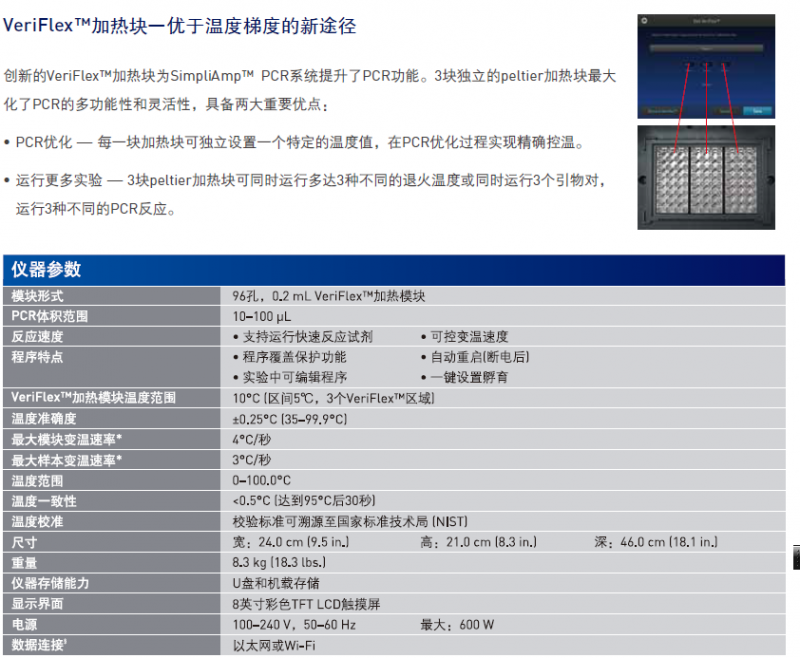 SimpliAmp PCR儀主要參數: |