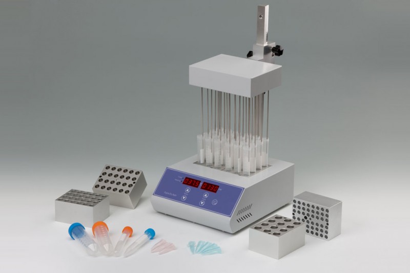ND100-2氮氣吹掃儀采用微電腦和PID模糊控制技術,利用高純度鋁材料做為導熱介質,以代替傳統的水浴裝置,具有使用方便、控溫范圍大、精度高等特點。其工作原理是將氮氣或空氣快速、連續、可控地吹到加熱樣品表面,并根據被濃縮溶劑的蒸發速度和沸點,設定加熱溫度,實現大量樣品的快速濃縮。