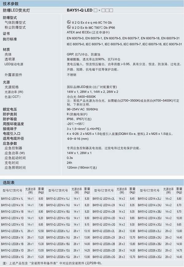 本系列燈具外殼采用GRP材質,透明罩為聚碳酸酯材質,具有良好的防腐性能。
