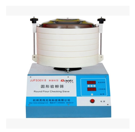 圓形驗粉篩(新國標)JJFS30×8是我公司根據新標準GB/T5507-2008《糧油檢驗粉類粗細度測定》研制開發的粉類粗細度檢驗篩。原理是樣品在不同規格的篩子上篩理,達到不同的顆粒分離。根據篩上物殘留量計算出粉類糧食的粗細度。結構上采用重心低、精度高的蝸輪副作變速傳動,通過偏心連桿機構作平面回轉運動,在機內平衡裝置的作用下,運轉更平穩,和托盤一體的壓緊桿座使篩子固定更可靠,操作更方便。電子定時控制,定時精度高。