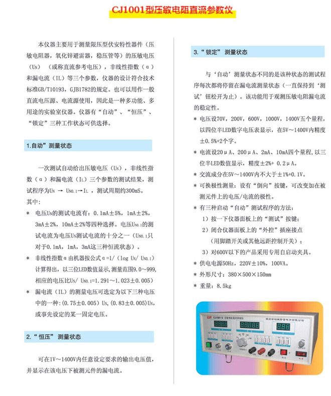 SS-CJ1001 壓敏電壓直流參數測試儀的產品簡介 ]信息由會員[