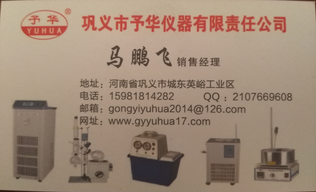 鞏義市予華儀器有限責任公司(原鞏義市英峪予華儀器廠)是重點開發(fā)、生產(chǎn)、銷售教學儀器的專業(yè)廠 家,主要生產(chǎn)有機合成裝置、旋轉蒸發(fā)器、雙層玻璃反應釜、顯微熔點測定儀、循環(huán)水式多用真空泵,玻璃儀器氣流烘干器、低溫冷卻液循環(huán)泵、不銹鋼集熱式磁力攪拌器、超聲波清洗器、電熱鼓風干燥箱、不銹鋼電熱板、智能玻璃恒溫水浴、水槽、真空干燥箱,臺式高速離心機、數(shù)顯恒溫電熱套、直流恒速攪拌器、加熱磁力攪拌器、數(shù)字溫度控制儀、升降臺、超細勻漿機、高剪切分散乳化機、高低溫循環(huán)裝置等多種型號的教學儀器。