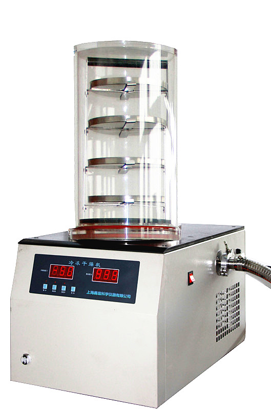 冷凍干燥機設備◆冷凝溫度: -50℃ ◆真 空 度:< 20Pa ◆凍干面積:0.12㎡ ◆盤裝物料:1.2 升 ◆捕水能力:3kg/24h ◆樣 品 盤:Φ200mm×4層 ◆電源要求:220V 50Hz 850W