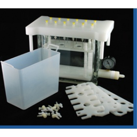 Mediwax固相萃取裝置可實現連續的樣品萃取和過濾,簡化復雜的樣品預處理過程并節約時間。整套裝置含有一個透明玻璃槽和頂蓋,可通過抽真空控制樣品流過SPE小柱實現萃取程序。通過調整玻璃槽里面的支架可容納不同規格的樣品收集管,包括玻璃或塑料試管、自動樣品瓶、容量瓶以及錐形瓶等,洗脫液通過選擇聚丙烯(PP)或不銹鋼導向針以及防交叉污染的特氟隆(Teflon)連接管直接引入樣品收集管。12位裝置附贈一個聚丙烯(PP)廢液槽,用于操作中收集廢液,可簡化樣品處理過程中廢液的處理以及保持玻璃槽內潔凈的環境。
