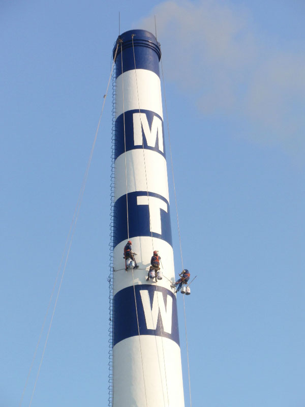 (二)電廠冷卻塔、尿素造粒塔、化纖排氣塔、水泥儲罐、飼料筒倉內外壁清理,防腐蝕工程。發電廠的電力高空安全作業:高空維修、高空安裝、高空建筑工程、油漆防腐、高空清洗美化、防水封漏、防水涂料粉刷及石油化學化工設備防腐保溫和煙囪的煙道煙氣環保脫硫除塵、環保衛生檢測等高空作業的工程。