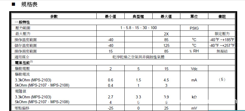 MPS-2100系列是8.5 × 8.5 mm的壓阻式壓力傳感器,可由定電壓(5 Vdc)或定電流(1, 1.5 mA)輸入,具有優異的性能和長時間的穩定性。