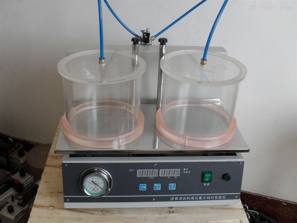 瀝青混合料zui大理論密度儀結構組成由機架、抽氣機、震動器、空氣閥、真空表、真空容器及控制電器等組成,