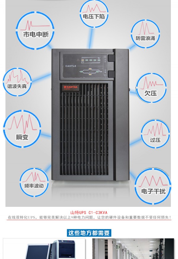 山特3C10KS 10KVA 8000W三進單出主機需外接蓄電池UPS不間斷電源