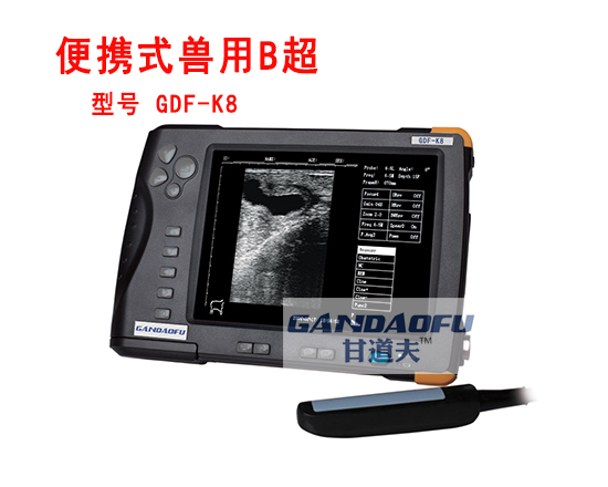奶牛B超測孕儀廠家,奶牛B超機怎么報價多少錢一臺 型號GDF-K8 全防水設計,方便主機和探頭的清洗;防摔抗震,經久耐用;人性化設計,方便快捷的界面操作;設計輕巧,含電池850g;8G U盤,數據隨時傳送至電腦備份;標配便攜包,方便快捷操作, 陳經理