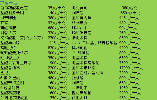 公司主營優勢產品:肉桂醛、肉桂酸、肉桂醇、肉桂酸鈉、肉桂酸鉀等肉桂系列;卡波姆940、卡波姆941、卡波姆934、卡波姆980等卡波姆系列;光引發劑TPO/光引發劑TPO/光引發劑819等光引發劑系列;誘蠅酮、誘蟲烯、惡霉靈、孟二醇、驅蚊酯、氯菊酯、三唑醇、誘蟲烯;N-油酰基肌氨酸(N-油酰肌氨酸)、阿托伐醌 、環孢素(環孢菌素)、2-咪唑烷酮、苯扎氯銨、茶堿等等化工中間體和吲哚美辛、保泰松、布洛芬、S-布洛芬、氟比洛芬、撲熱息痛、阿司匹林、等等解熱鎮痛原料藥及、格列苯脲、格列齊特、格列美脲、等等降血糖原料藥及公司經營的精細化工、生物化工醫藥,植物提取物等產品暢銷全國各地并出口到歐美及東南亞20多個國家和地區。