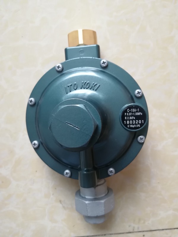 ITO KOKI伊藤調壓器C-10A-1減壓閥調壓閥壓力調整器入口壓力:0.07-1.56MPA 出口壓力:2.3-3.3KPA 進口RC1/2,出口3/4油擰,帶內部放散功能,流量:6.6-10NM3/H 供多種彈簧選擇出口壓力:0.5-20KPA