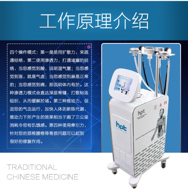 將中醫(yī)推拿、刮痧、拔罐、針灸四種功效融為一體。可以快速達(dá)到通經(jīng)絡(luò),益氣活血的功效。我有四個(gè)治療模式:一是使用擴(kuò)散力,來(lái)疏通經(jīng)絡(luò),第二使用滲透力,打通堵塞的經(jīng)絡(luò),當(dāng)您感覺(jué)到酸,說(shuō)明濕氣重;當(dāng)您感覺(jué)到漲,就是氣虛;當(dāng)您感覺(jué)到麻是正常的;當(dāng)您感覺(jué)到痛,那說(shuō)明您體內(nèi)有於。這種滲透力模式會(huì)直達(dá)深層骨縫,打散粘連組織,從而緩解於堵。第三種推動(dòng)力,促進(jìn)您的氣血運(yùn)行,加快人體的新陳代謝,推動(dòng)力下所產(chǎn)生的效果相當(dāng)于跑了三公里,消耗令您有饑餓感。第四種使用牽引力,針對(duì)您的頸椎增生,腰椎增生等骨質(zhì)問(wèn)題,可以起到很好的修復(fù)作用。