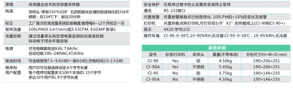 CI-9xA 系列浮游菌采樣儀的技術參數: