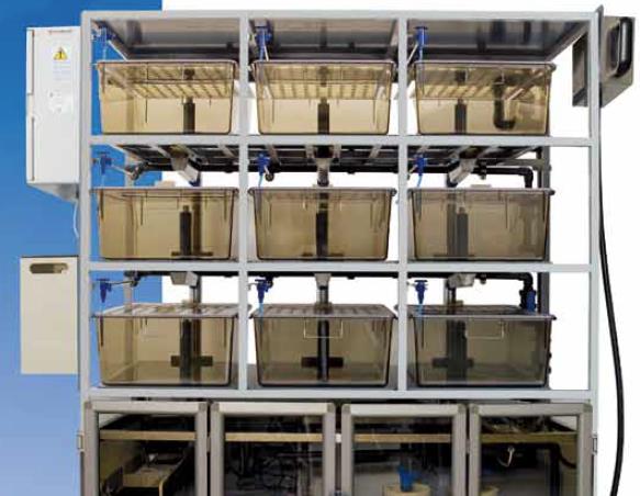 提供13.4L和27.0L兩種型號的。養殖盒設計獨特。盒子的顏色為動物的健康提供了佳的環境,減少了藻類的生長,平滑的角落有助于防止傷害。通過滑動蓋子可以很容易地查看盒子內部的情況。內部立管設計,可以在系統上進行常規的碎片清除和水箱排水。每個養殖盒都能夠容納所有生命階段,包括可用的排泄附件(排泄蓋)。