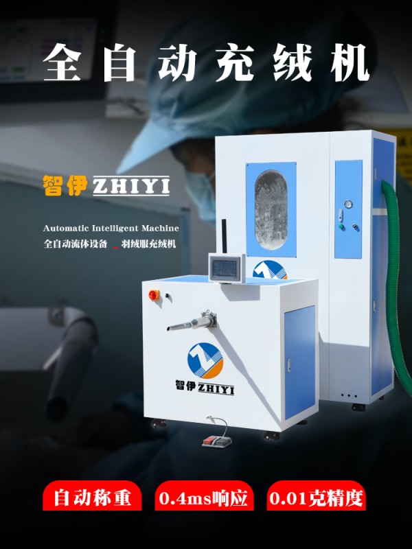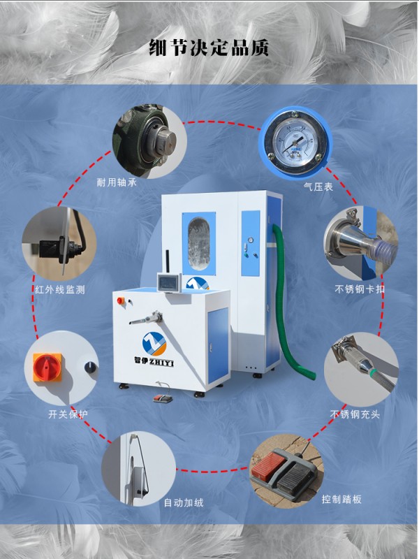 智伊全自動單口雙稱可擴展充絨機充被機,是一款占地面積小操作方便的羽絨被的充絨機型,適合門店和商場攤位等加工場所進行工作