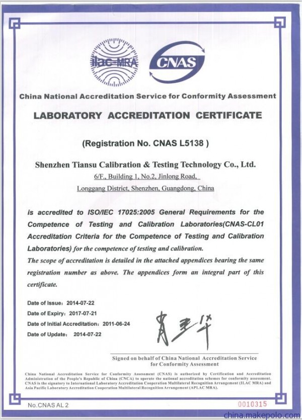 均可下廠服務(wù):世通儀器計(jì)量檢測(cè)校準(zhǔn)中心華南實(shí)驗(yàn)室是經(jīng)認(rèn)可委員??會(huì)認(rèn)可(認(rèn)可號(hào)L3170),實(shí)驗(yàn)室互認(rèn)組織(ILAC-MRA)授權(quán),通過(guò)ISO17025計(jì)量準(zhǔn)則的具有第三方認(rèn)證機(jī)構(gòu).CNAS認(rèn)證及咨詢培訓(xùn)的值得信賴的第三方公正實(shí)驗(yàn)室.公司秉著“科學(xué)、公正、準(zhǔn)確、”的理念和方針。目前公司的主營(yíng)業(yè)務(wù)分布在珠三角地區(qū):東莞、深圳、惠州、廣州、中山、佛山、珠海、江門、河源、肇慶等主要城市的儀器校正.儀器校驗(yàn).儀器校準(zhǔn).儀器檢測(cè).儀器計(jì)量.儀器外校.本校準(zhǔn)檢測(cè)中心設(shè)有:力學(xué)、長(zhǎng)度、幾何量、衡器、光學(xué)、電磁學(xué)及無(wú)線電室、熱工等校準(zhǔn)實(shí)驗(yàn)室.本校準(zhǔn)中心可對(duì)以上類別范圍的各國(guó)儀器進(jìn)行校準(zhǔn)并出具符合ISO、UL、3C、CQC、CE及客戶驗(yàn)廠審核等要求之法定校準(zhǔn)證書/報(bào)告.我司將以合理的價(jià)格.優(yōu)質(zhì)的服務(wù),高品質(zhì)的檢測(cè)技術(shù)為廣大顧客服務(wù). 歡迎您來(lái)電咨詢.洽談!