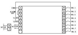 通訊方式RS485,接點式開路報警,DC24V饋電輸出,AC90~265V供電,數字式指示。