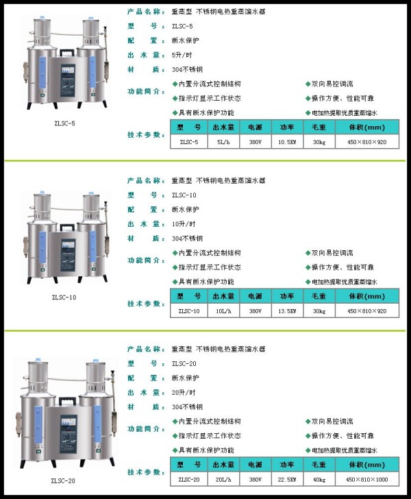 產品名稱: 不銹鋼電熱重蒸餾水器