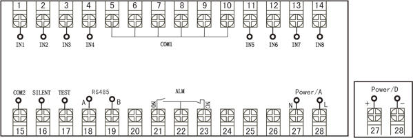 注:1、IN1-IN8為八個輸入通道,COM1為8個輸入通道的公共端;