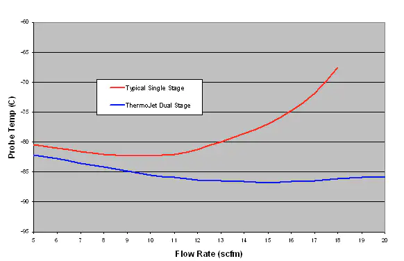 功能強: 在20SCFM的流速下釋放-80oC的溫度。