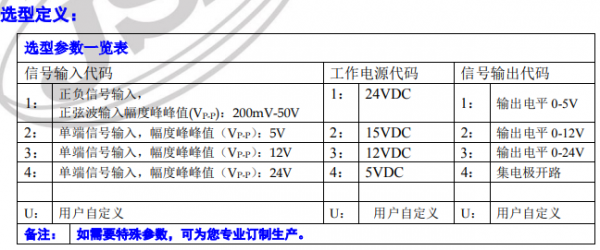 例 1:輸入:轉速傳感器,正弦波 VP-P:200mV-50V;工作電源:24V;輸出:0-5V 電平;產品型號:JSD TAS-1001D-111
