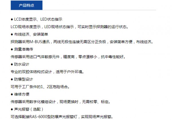各個型號,基本功能是一樣的,比如帶液晶屏顯示的,可以在屏幕上直觀的看到氣體的濃度,不帶液晶屏顯示的就不能看到,帶LED顯示,只能看到一些狀態(tài)指示燈,盲蓋的則什么都不能看,可以根據(jù)自己的需要進(jìn)行選擇。基本的技術(shù)參數(shù)一致,以下是RBT-6000-ZLGX帶顯示屏的參數(shù),其他可以參考
