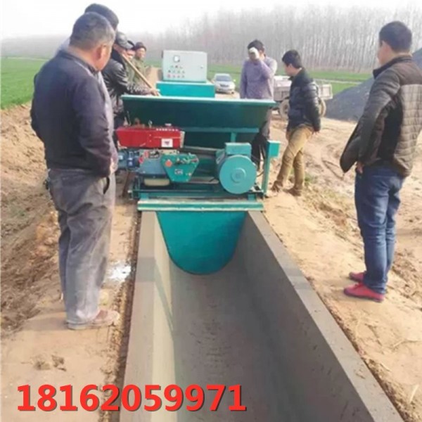 一次現澆水渠設備是一種水利機械,它能夠現場澆筑成型不同規格的水槽渠道,如硬質渠、毛渠、排水渠、灌溉渠等,即便是口寬一米以上,或者是30cm、40cm、50cm、60cm-80cm的水槽構件都可以進行一次成型,成型的方式是,在事先開挖好的相對應模子的溝壑內,放入機器后填料進行成型脫模,保正渠面光滑,也保正渠的整體質量,使用C30或者C20的商混砼都可以。