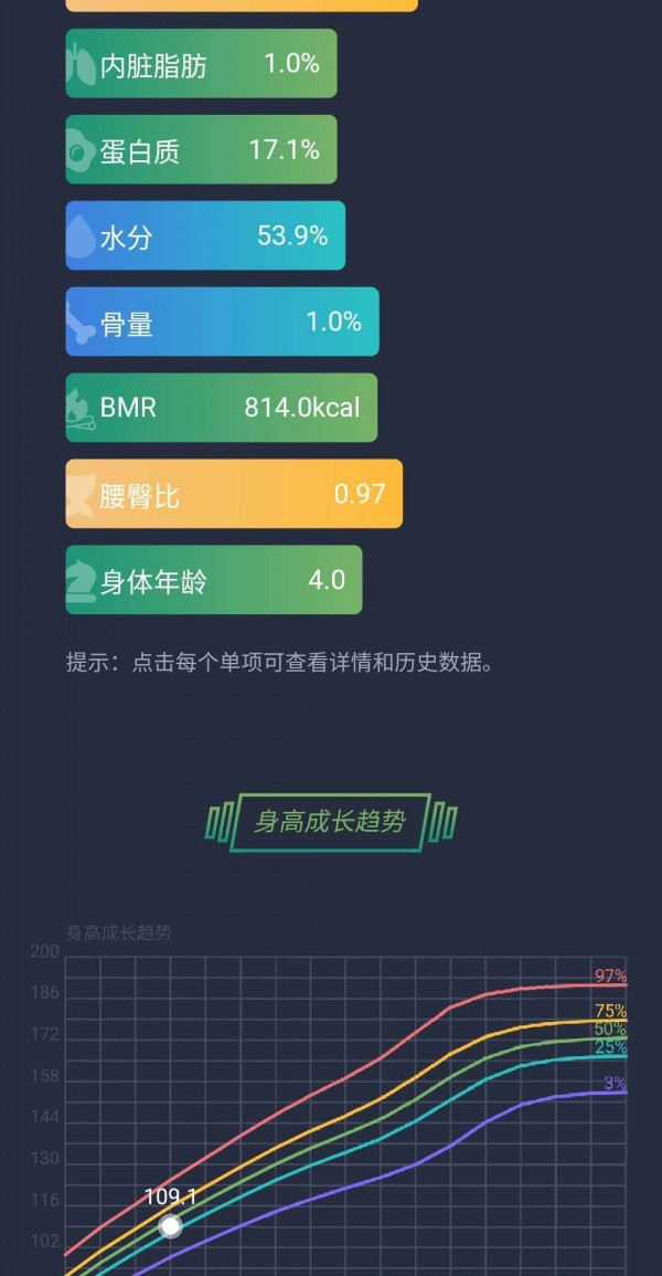1. 身高:反映人體骨骼生長發育和人體縱向高度。