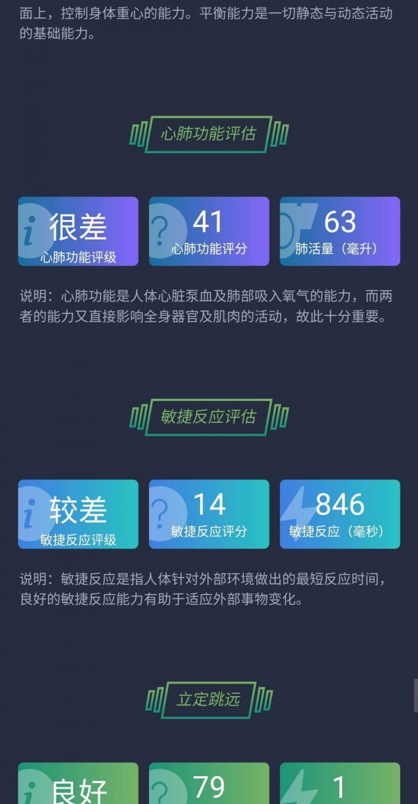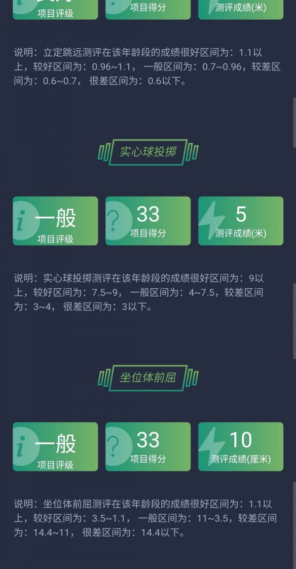 2.立定跳遠:反映下肢肌肉爆發力和彈跳能力。