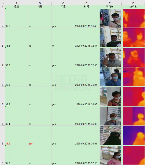 l 支持人臉、溫度、時(shí)間、是否佩戴口罩表格導(dǎo)出